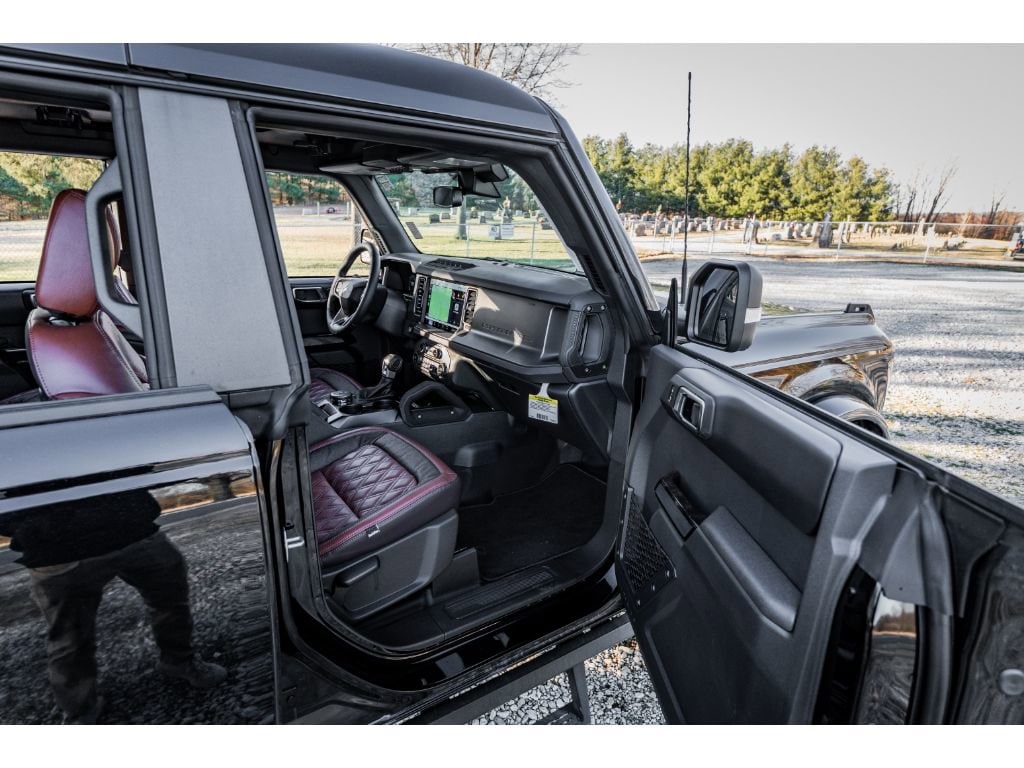 Equipment Group 334A Lux Package: 17" Carbonized Gray-Painted Aluminum Wheel; Rear Parking Sensors; Power Outlet - Back Side of Center Floor Console; Dual Smart Charging USB Ports; Front Row Heated Seats; Driver and Front Passenger Illuminated Sliding Visor Vanity Mirrors; Evasive Steering Assist; Adaptive Cruise Control; Information on Demand Panel; B&O Sound System by Bang and Olufsen; Marine Grade Vinyl Heated Bucket Seats; Dual-Zone Electronic Automatic Temperature Control; Connected Navigation; Front Parking Sensors; 360-Degree Camera; LT285/70R17 A/T Tires; Ambient Footwell Lighting; Universal Garage Door Opener; Remote Start System; 2-Door Intelligent Access with Lock/unlock; Sideview Mirrors. Ford Co-Pilot360: Auto High-Beam Headlamps; Rear View Camera; Pre-Collision Assist with Automatic Emergency Braking; Blind Spot Information System (BLIS); Lane-Keeping System. Shadow Black Painted Hard Top. Hard Top Sound Deadening Headliner. **Equipment listed is based on original vehicle build and subject to change. Please confirm the accuracy of the included equipment by calling the dealer prior to purchase.**