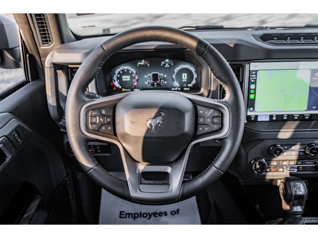 This vehicle offers Apple CarPlay for seamless connectivity. The Ford Bronco is pure luxury with a heated steering wheel. This unit warns of approaching vehicles with Cross-Traffic Alert. Protect the Ford Bronco from unwanted accidents with a cutting edge backup camera system. Heated seats for those cold winter days are included in it. This 1/2 ton suv features a hands-free Bluetooth phone system. It comes equipped with Android Auto for seamless smartphone integration on the road. This unit has auto-adjust speed for safe following. An off-road package is equipped on the Ford Bronco. Start this unit from inside with remote start. The installed navigation system will keep you on the right path. The rear parking assist technology on this vehicle will put you at ease when reversing. The system alerts you as you get closer to an obstruction. The Ford Bronco is painted with a sleek and sophisticated black color.