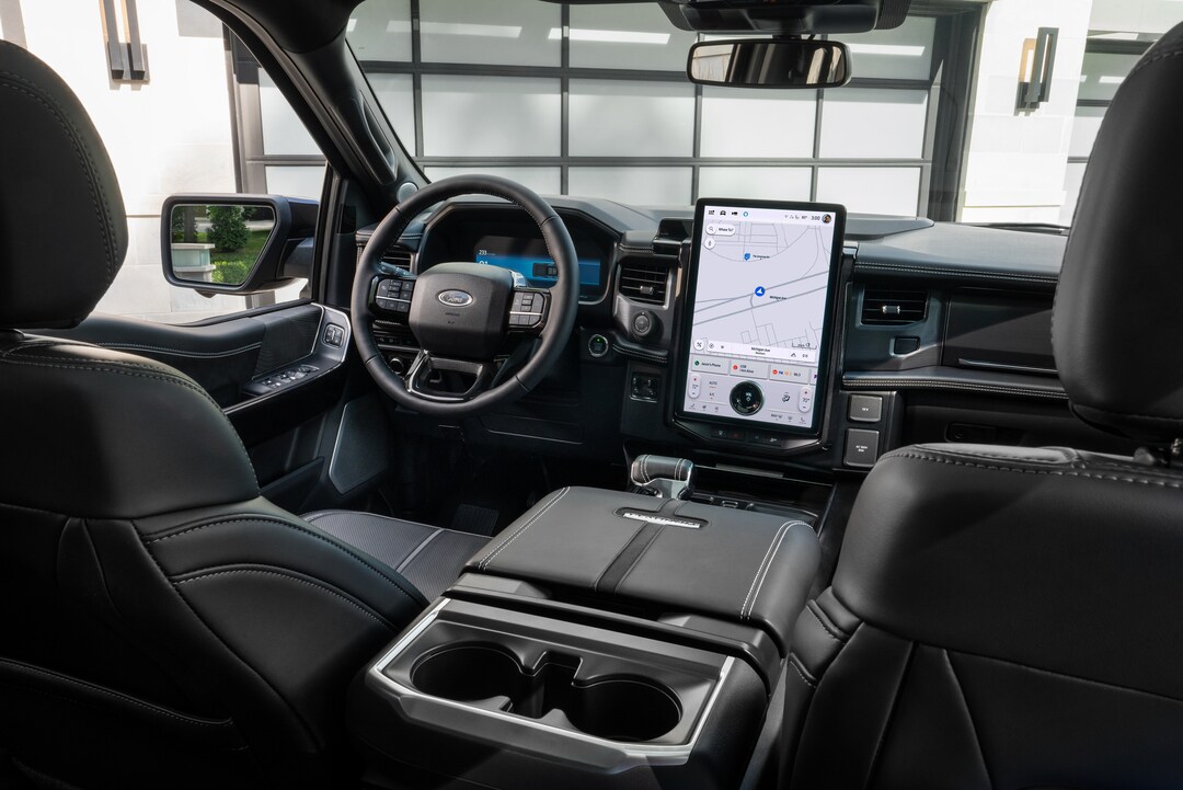 Available amenities include heated and ventilated leather seats, a twin-panel moonroof, wireless charging, and a mobile office package with console worksurface. The F-150 also offers innovative features, like Pro Power Onboard, which turns your truck into a mobile generator with up to 2.4 kW of power for tools and equipment.