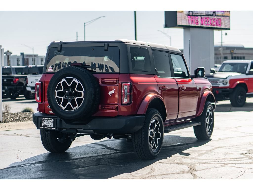 2024 Ford Bronco Outer Banks 4WD located in Evansville, IN blends rugged capability with refined comfort, making it an ideal choice for drivers who want adventure-ready performance and modern convenience. Powered by a 2.3L 4-cylinder gasoline engine with 4WD, this Ford Bronco delivers efficient power, confident handling, and off-road readiness for weekend trails or daily commuting. This Outer Banks trim is equipped with Navigation for effortless route planning, Apple CarPlay for seamless smartphone integration, and Hands-Free Bluetooth to keep calls and media connected safely on the go. Advanced driver-assist features include Adaptive Cruise Control for relaxed highway driving and Cross-Traffic Alert to enhance awareness when backing out of parking spots. The exterior presents signature Ford Bronco styling with durable design cues, while the interior offers premium materials, intuitive controls, and comfortable seating for longer trips. Cargo flexibility and smart storage solutions support outdoor gear and urban errands alike. Located in Evansville, IN, this Ford Bronco Outer Banks is competitively priced and promoted as the best price available an excellent value for shoppers seeking capability, technology, and safety in one package. Schedule a test drive to experience the confident 4WD capability and refined amenities firsthand. Financing options are available to fit a range of budgets, making it easy to drive home this versatile 2024 Ford Bronco Outer Banks today.
