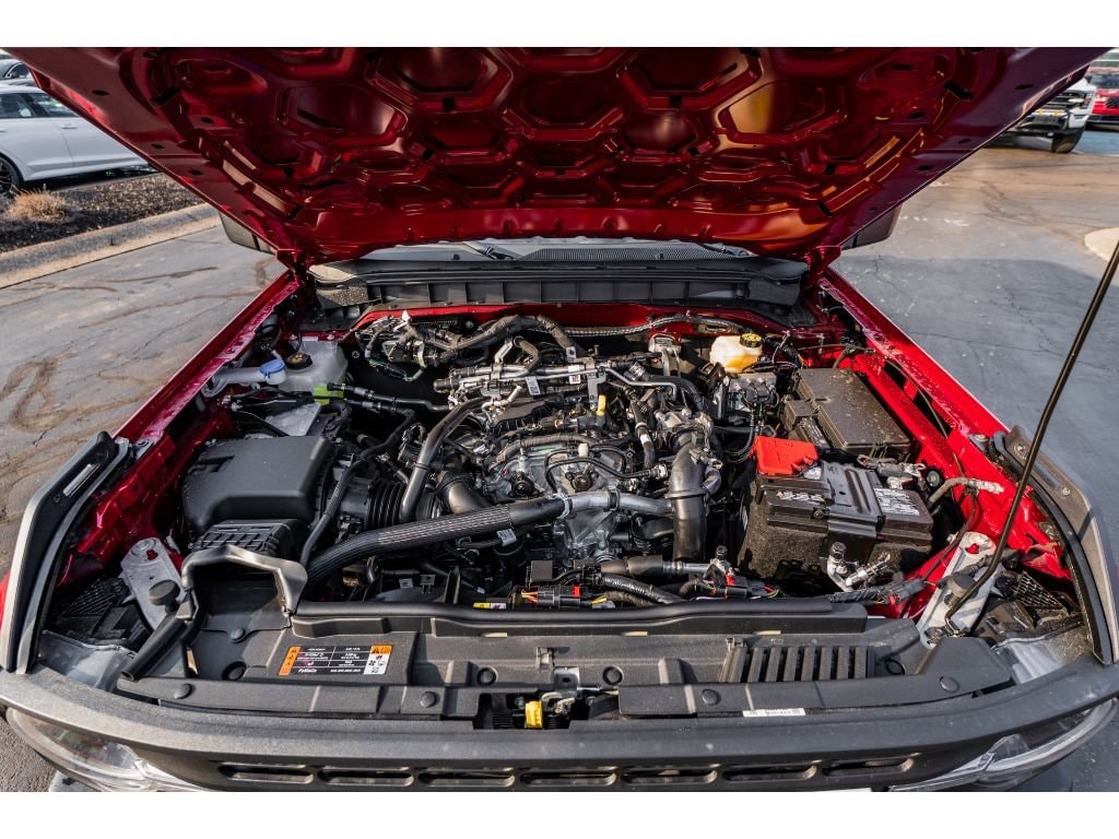 Equipment Group 222A Mid Package: 17" Carbonized Gray-Painted Aluminum Wheel; Rear Parking Sensors; Power Outlet - Back Side of Center Floor Console; Dual Smart Charging USB Ports; 2.3L EcoBoost I-4 Engine; Front Row Heated Seats; Driver and Front Passenger Illuminated Sliding Visor Vanity Mirrors; AM/FM Stereo; Dual-Zone Electronic Automatic Temperature Control; Connected Navigation; P255/75R17 A/T Tires; Ambient Footwell Lighting; Remote Start System; Cloth Bucket Seats; 2-Door Intelligent Access with Lock/unlock. Ford Co-Pilot360: Auto High-Beam Headlamps; Rear View Camera; Pre-Collision Assist with Automatic Emergency Braking; Blind Spot Information System (BLIS); Lane-Keeping System. Carbonized Gray Molded-In-color Hard Top. Hard Top Sound Deadening Headliner. Ruby Red Met Tinted CC. Door Storage Bags. Front and Rear Floor Liners. **Equipment listed is based on original vehicle build and subject to change. Please confirm the accuracy of the included equipment by calling the dealer prior to purchase.**