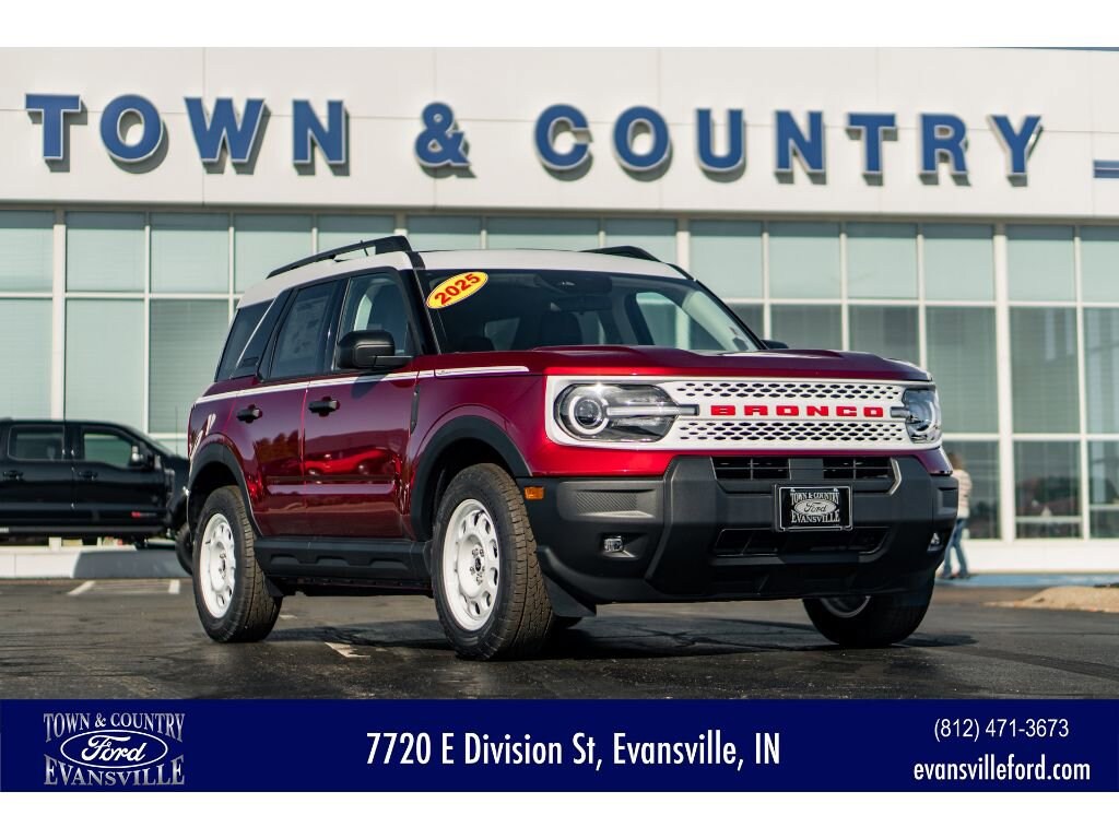 2025 Ford Bronco Sport Heritage 4WD with 1.5L 3-cylinder gasoline engine located in Evansville, IN. This iconic compact SUV blends classic styling cues with modern capability, delivering confident on- and off-road performance thanks to a proven 4WD system and efficient turbocharged 1.5L engine. The Heritage trim adds distinctive exterior accents and rugged design elements that stand out in any setting. Inside, the cabin balances comfort and utility with premium materials and driver-focused features. Hands Free Bluetooth keeps your focus on the road while staying connected, and both Apple CarPlay and Android Auto provide seamless smartphone integration for navigation, music, and communication. Adaptive Cruise Control enhances highway comfort and safety by maintaining set speed and following distance, and Rear Parking Sensors make parking and low-speed maneuvers easier in tight spaces. This Ford Bronco Sport Heritage is competitively priced and offers the best price in the Evansville, IN area great value for buyers seeking style, capability, and modern tech. Whether navigating urban streets or heading for outdoor adventures, this model is engineered to perform with efficiency and confidence. Contact us to schedule a test drive in Evansville and experience the blend of heritage design, smart technology, and true 4WD capability for yourself.