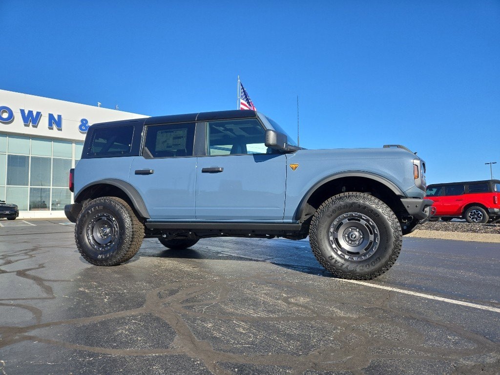 2025 Ford Bronco Badlands 4WD located in Evansville, IN delivers rugged capability and refined comfort for drivers who demand performance on and off the road. Powered by a potent 2.7L V6 gasoline engine and four-wheel drive, this Ford Bronco Badlands is engineered to conquer challenging terrain with confidence while providing a smooth highway ride. The included Off Road Package adds specialized suspension tuning, enhanced underbody protection, and terrain-select driving modes to tackle mud, rock and sand. Interior comfort features include heated front seats and a heated steering wheel for cold-weather convenience, plus remote start for quick cabin preconditioning. Safety and maneuverability are supported by rear parking sensors that make tight-space parking effortless. These modern conveniences pair with durable Ford Bronco design elements and intuitive controls for an enjoyable driving experience. This Ford Bronco is competitively priced and advertised as the best price in the Evansville, IN area, offering exceptional value for buyers seeking off-road readiness without compromise. Whether you're navigating daily commutes or weekend trails, the 2025 Ford Bronco Badlands 4WD with the 2.7L V6 provides the capability and comfort appealing to adventurous drivers. Contact the dealership in Evansville to schedule a test drive and see why this Ford Bronco stands out as a smart choice.