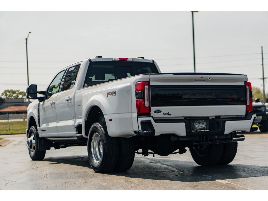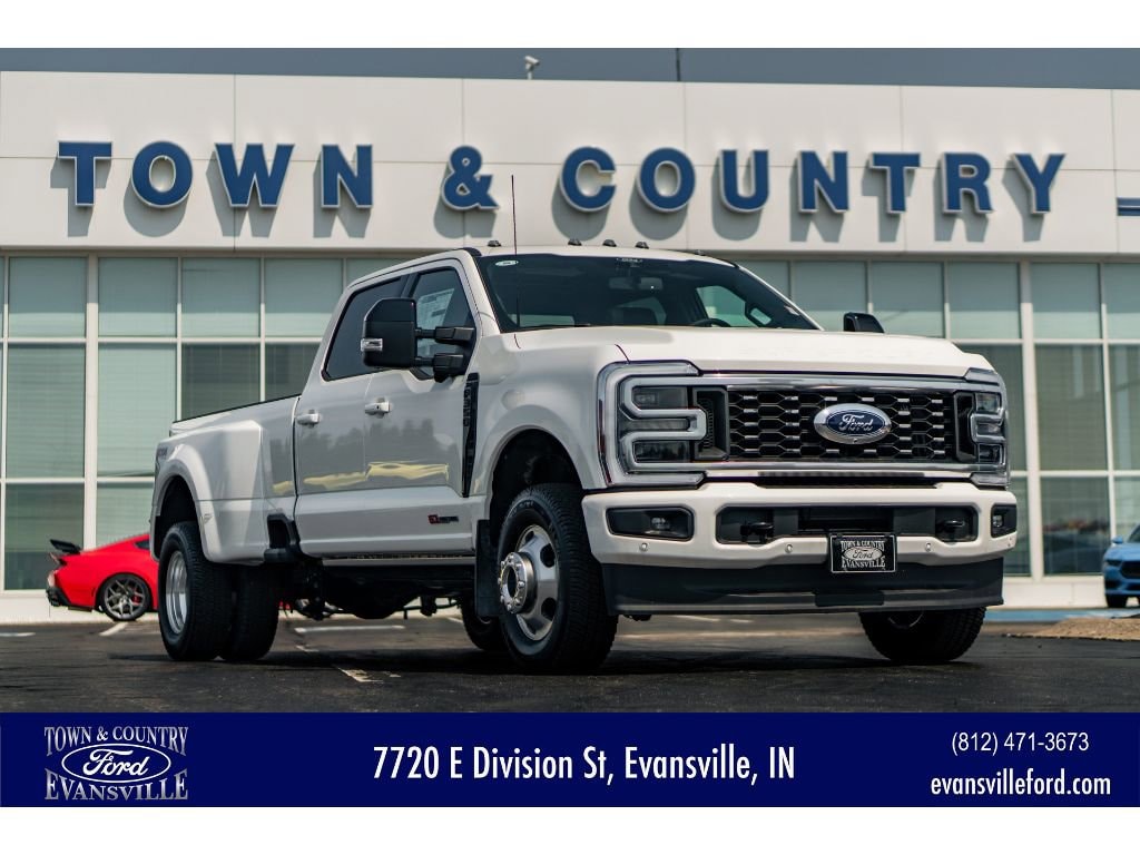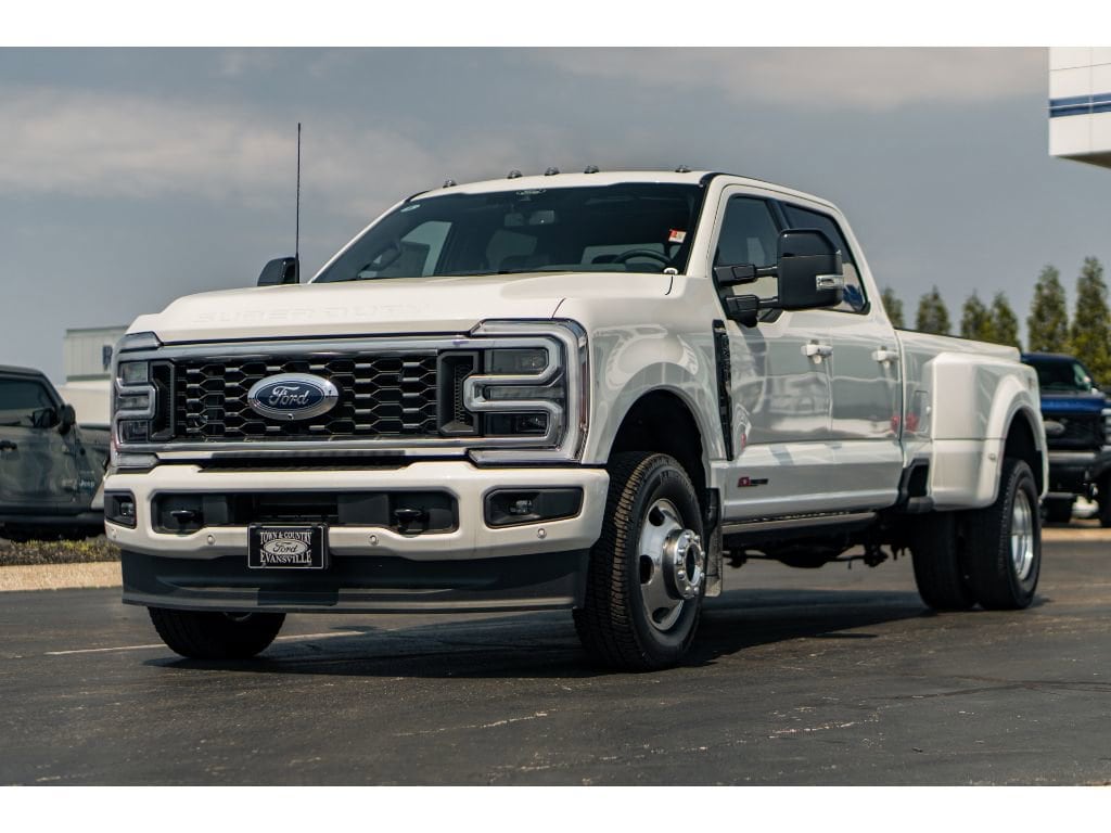 Conquer every jobsite and weekend adventure with this 2025 Ford F-350 Super Duty Platinum 4WD a powerhouse built for performance, comfort, and capability. Equipped with the legendary V8 6.7L Diesel engine and Dual Rear Wheels, this Ford F-350 delivers class-leading towing and payload capacity with smooth, confident power. The Platinum trim brings premium leather seats, advanced Adaptive Cruise Control, and a full featured Navigation system to keep you connected and comfortable on long hauls. Designed for drivers who demand capability and refinement, this Super Duty includes Remote Start for convenience in any weather and an Off-Road Package that enhances traction and durability when the pavement ends. The spacious, upscale cabin features thoughtful tech and luxury touches, making it ideal for contractors, fleet managers, or families who need serious capability without sacrificing comfort. Located in Evansville, IN, this 2025 Ford F-350 Super Duty Platinum is offered at the best price in the area an unbeatable value for a truck with this combination of diesel power, Dual Rear Wheels, 4WD, and Platinum-level amenities. Don't miss your chance to own a premium heavy-duty pickup that's ready to work hard and ride in style. Contact us today to schedule a test drive and experience the strength, technology, and comfort of this exceptional Ford F-350 for yourself.