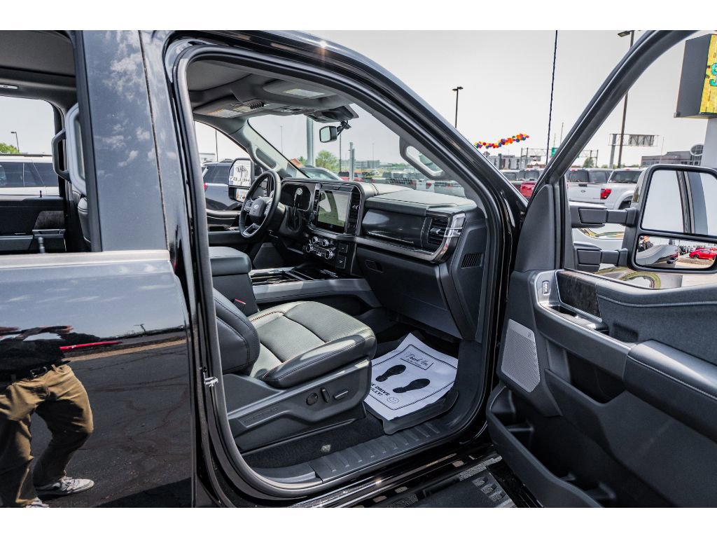 Black Appearance Package: Rear Wheel Well Liners; Black Painted Front Grille Surround; Ebony Black Painted Mirror Caps; Tough Bed Spray-In Bedliner; Body Color Front and Rear Bumpers; 6" Ebony Black Angular Running Boards. Lariat Ultimate Package. Ford Co-Pilot 360 Assist 2.0: Pre-Collision Assist; Post-Collision Braking; BLIS with Cross-Traffic Alert; Lane-Keeping System; Front and Rear Parking Sensors; Automatic High Beam; Adaptive Cruise Control with Stop-And-Go. Tremor Off-Road Package. Order Code 618A: 18" Bright Machined and Carbonized Gray Aluminum Wheels; Front ActiveX Trimmed 40/console/40 Seats; LT275/70Rx18E BSW A/T (4) Tires; B&O Sound System by Bang and Olufsen. Twin Panel Power Moonroof. Power-Deployable Running Boards. Pro Power Onboard - 2kW. 5th Wheel/gooseneck Hitch Prep Package. Tough Bed Spray-In Bedliner. Electronic-Locking with 3.55 Axle Ratio. Power-Sliding Rear-Window with Defrost. Tailgate Step and Handle. Rapid-Heat Supplemental Cab Heater. Upfitter Switches (6). Rear Wheel Well Liners. All-Weather Floor Mats. LED Roof Clearance Lights. **Equipment listed is based on original vehicle build and subject to change. Please confirm the accuracy of the included equipment by calling the dealer prior to purchase.**