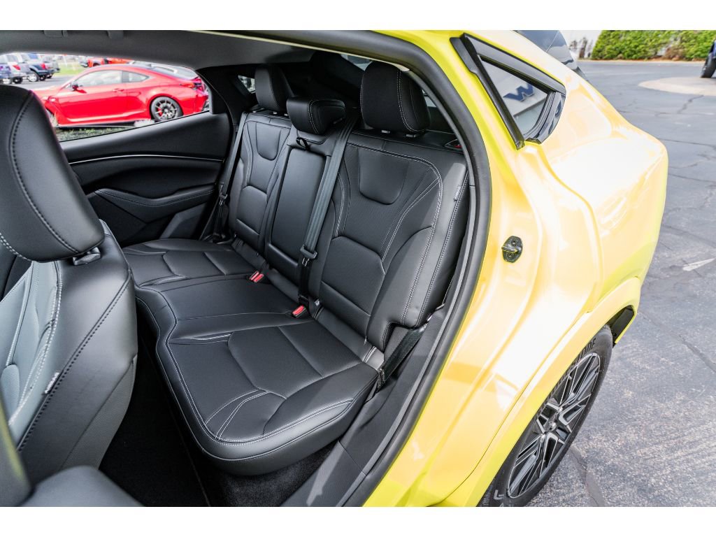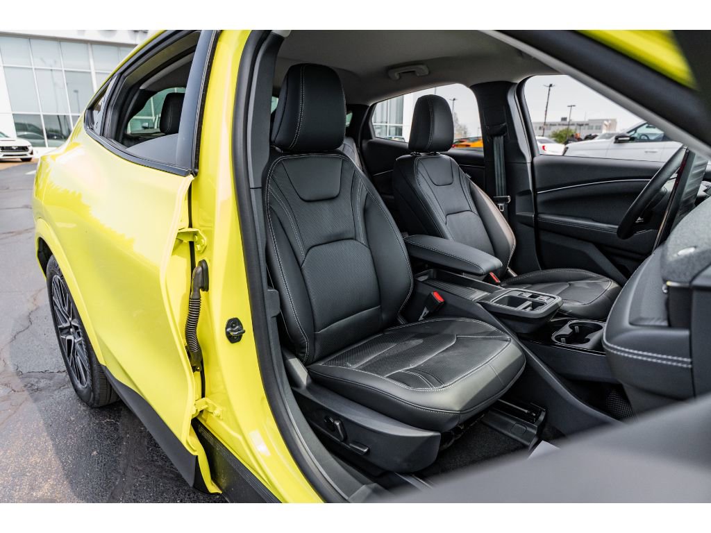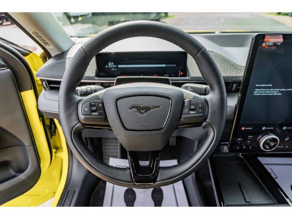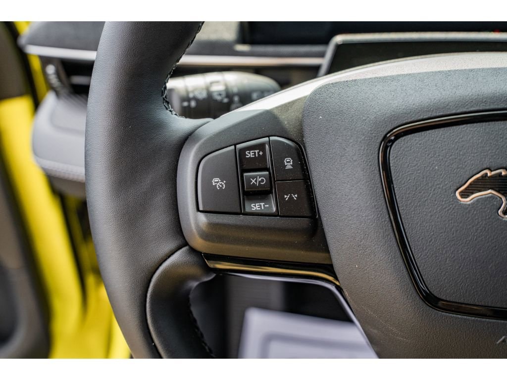Apple CarPlay: Seamless smartphone integration for this Ford Mustang Mach-E - stay connected and entertained on the go! Keep your hands warm all winter with a heated steering wheel in this unit . The leather seats in it are a must for buyers looking for comfort, durability, and style. This mid-size suv comes equipped with Android Auto for seamless smartphone integration on the road. See what's behind you with the back up camera on this vehicle. The vehicle has automated speed control that adjusts to maintain a safe following distance, enhancing highway driving convenience. Bluetooth technology is built into it, keeping your hands on the steering wheel and your focus on the road. You'll never again be lost in a crowded city or a country region with the navigation system on this mid-size suv. Load groceries and much more with ease into this model thanks to the power liftgate. Conquer any rainy, snowy, or icy road conditions this winter with the all wheel drive system on it.