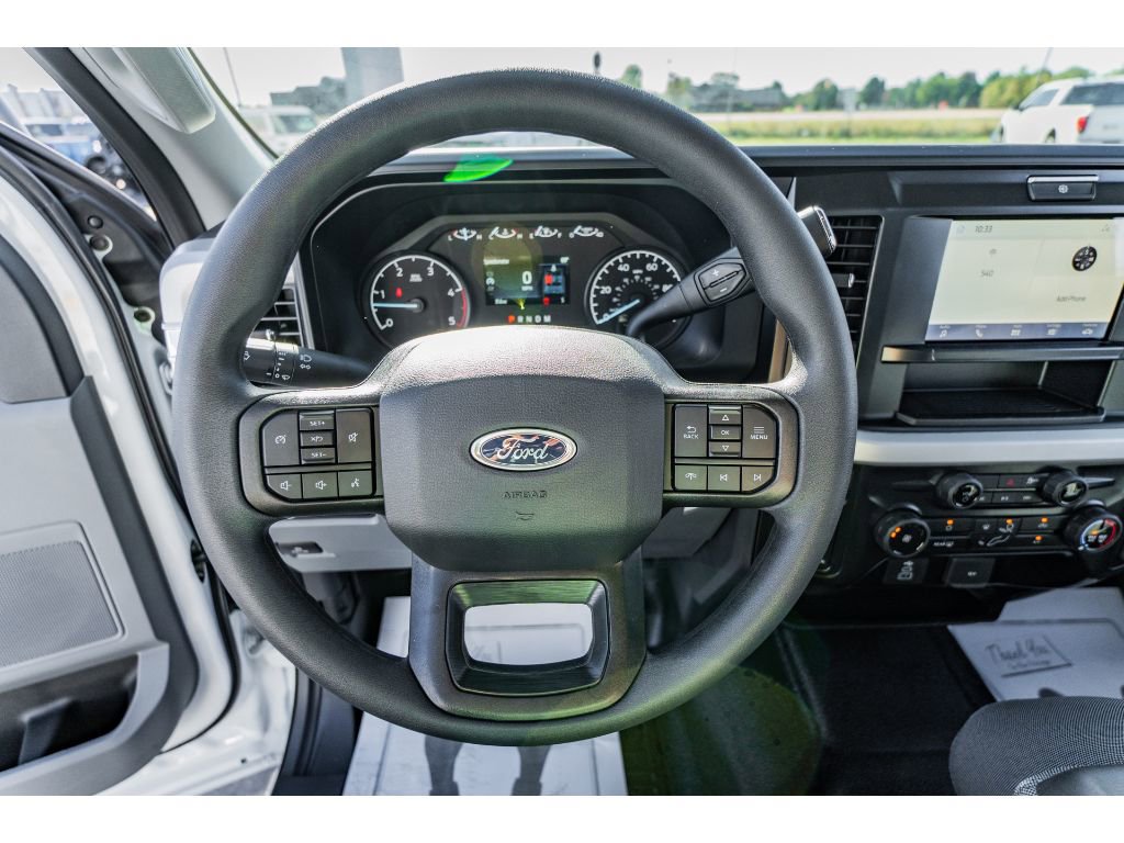 XL Chrome Package: Halogen Fog Lamps; Chrome Rear Step Bumper; Bright Chrome Hub Covers and Center Ornaments; Chrome Front Bumper. High Capacity 11.6" Axle Upgrade Package. Order Code 600A: 17" Argent Painted Steel Wheels; LT245/75Rx17E BSW A/S Tires; AM/FM Stereo with MP3 Player. 5th Wheel/gooseneck Hitch Prep Package. Power-Sliding Rear-Window with Defrost. Platform Running Boards. Electronic-Locking with 3.55 Axle Ratio. Tailgate Step and Handle. Cloth 40/20/40 Split Bench Seat. Spare Tire. Wheel. Carrier and Jack. Upfitter Switches (6). 120V/400W Outlet. LED Box Lighting. Privacy Glass. **Equipment listed is based on original vehicle build and subject to change. Please confirm the accuracy of the included equipment by calling the dealer prior to purchase.**