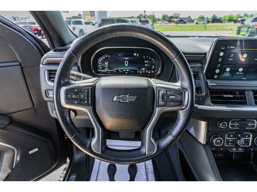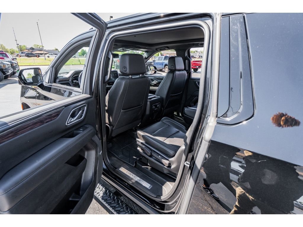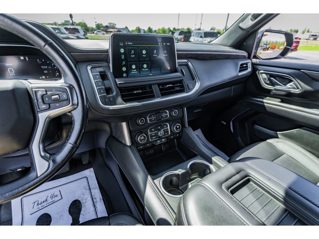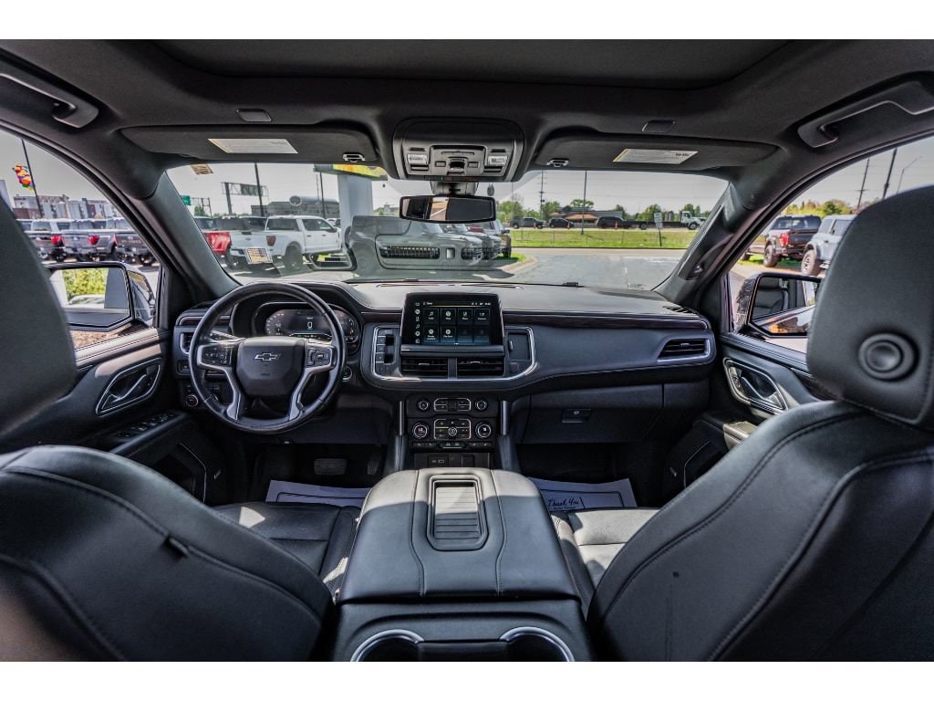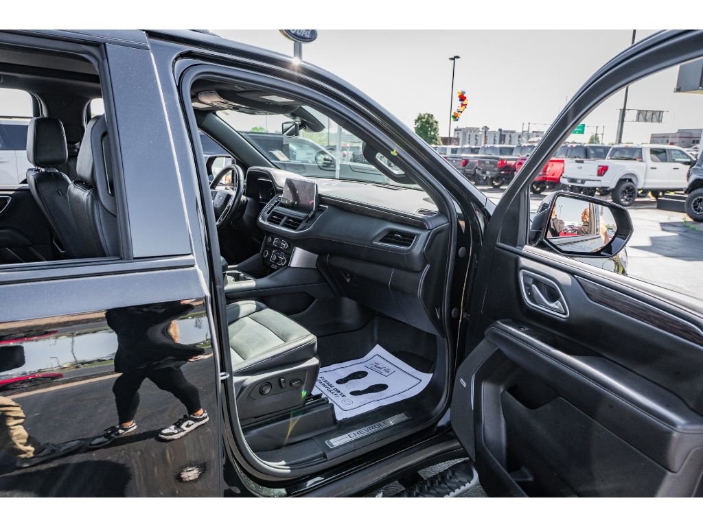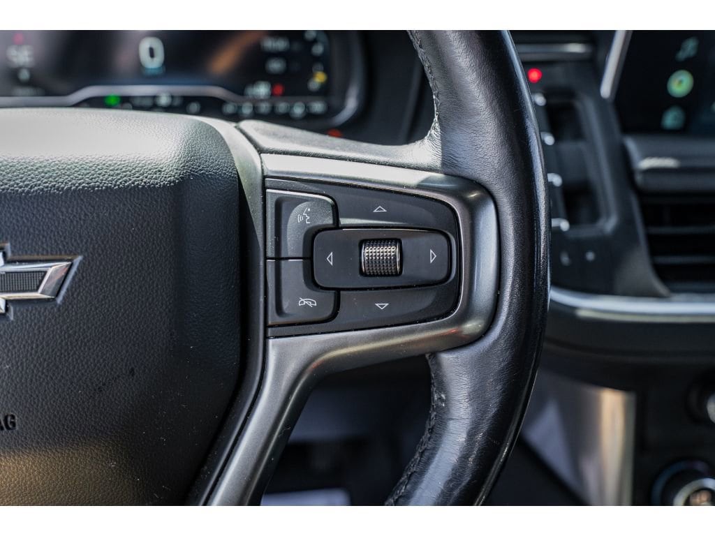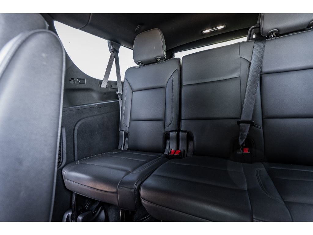 Driver Alert Package: Rear Cross Traffic Alert; Lane Change Alert with Side Blind Zone Alert. Luxury Package: HD Surround Vision; Heated 2nd Row Outboard Seats; 2nd Row Power Release 60/40 Split-Folding Bench Seat; Memory Settings; Power Tilt and Telescopic Steering Column; Rear Pedestrian Alert; Heated Steering Wheel; 3rd Row 60/40 Power-Folding Split-Bench; Outside Heated Power-Adjustable Mirrors. Preferred Equipment Group 2Z7: Bright Front and Rear Door Sill Plates; Stop/start System Disable Button; Leather-Appointed Seating; Remote Start; Hill Descent Control; Front and Rear Park Assist; 20" X 9" Machined Aluminum Wheels; Floor Console with Storage Area; Black Tubular Assist Steps; LED Daytime Running Lamps; Driver and Front Outboard Passenger Airbags; 10-Way Power Driver and Passenger Seat Adjusters; Memory Settings For Driver; Heated Driver and Front Passenger Seats; Wireless Charging; Front Bucket Seats; Universal Home Remote; Color-Keyed Carpeting Floor Covering; Front Skid Plate; Front High-Approach Angle Fascia; Hands-Free Rear Power Programmable Liftgate; Chevrolet Infotainment 3 Premium System Radio; Bose 9-Speaker Stereo Audio System Feature; 2-Speed Active Electronic Autotrac Transfer Case; 1st and 2nd Row Color-Keyed Carpeted Floor Mats; Enhanced Driver Information Center; Red Recovery Hooks; SiriusXM Radio with 360L; Leather-Wrapped Steering Wheel; 275/60R20SL AT BW Tires; Infotainment Display; Auto-Dimming Inside Rearview Mirror; Automatic Stop/start. 20" Multi-Spoke Gloss Black Wheels. Dual-Pane Power Panoramic Sunroof. Black Illuminated Front Bowtie Emblem. Power Release 2nd Row Bucket Seats. **Equipment listed is based on original vehicle build and subject to change. Please confirm the accuracy of the included equipment by calling the dealer prior to purchase.**