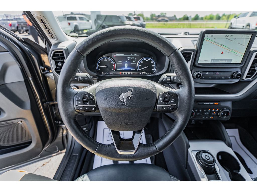 It has automated speed control that adjusts to maintain a safe following distance, enhancing highway driving convenience. See what's behind you with the back up camera on the Ford Bronco Sport. It warns of approaching vehicles with Cross-Traffic Alert. Bluetooth technology is built into this 2023 Ford Bronco Sport , keeping your hands on the steering wheel and your focus on the road. The installed navigation system will keep you on the right path. It keeps you comfortable with Auto Climate. This unit has a clean CARFAX vehicle history report. Good News! This certified CARFAX 1-owner vehicle has only had one owner before you. Keep your hands warm all winter with a heated steering wheel in this unit . This mid-size suv offers Apple CarPlay for seamless connectivity. Never get into a cold vehicle again with the remote start feature on the vehicle. The rear parking assist technology on the Ford Bronco Sport will put you at ease when reversing. The system alerts you as you get closer to an obstruction.