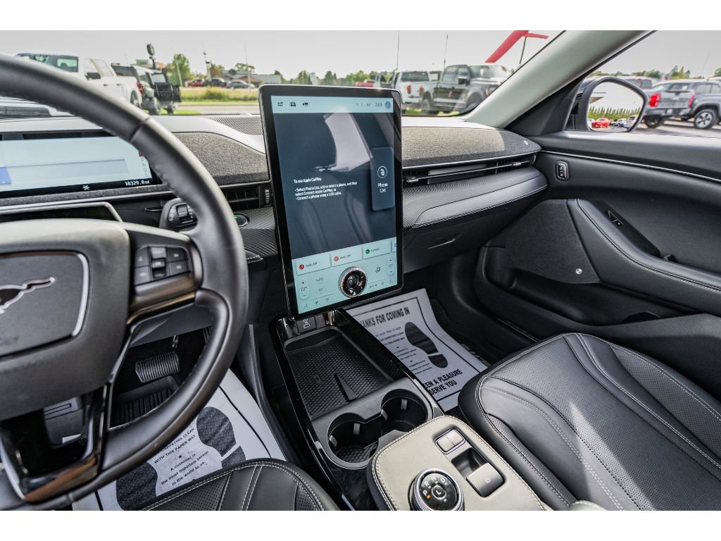The leather seats in the vehicle are a must for buyers looking for comfort, durability, and style. The vehicle offers Android Auto for seamless smartphone integration. This model has automated speed control that adjusts to maintain a safe following distance, enhancing highway driving convenience. Good News! This certified CARFAX 1-owner vehicle has only had one owner before you. See what's behind you with the back up camera on this model. You'll never again be lost in a crowded city or a country region with the navigation system on this vehicle. Apple CarPlay: Seamless smartphone integration for this vehicle - stay connected and entertained on the go! Keep your hands warm all winter with a heated steering wheel in the vehicle . Set the temperature exactly where you are most comfortable in the vehicle. The fan speed and temperature will automatically adjust to maintain your preferred zone climate. Conquer any rainy, snowy, or icy road conditions this winter with the all wheel drive system on the Ford Mustang Mach-E.