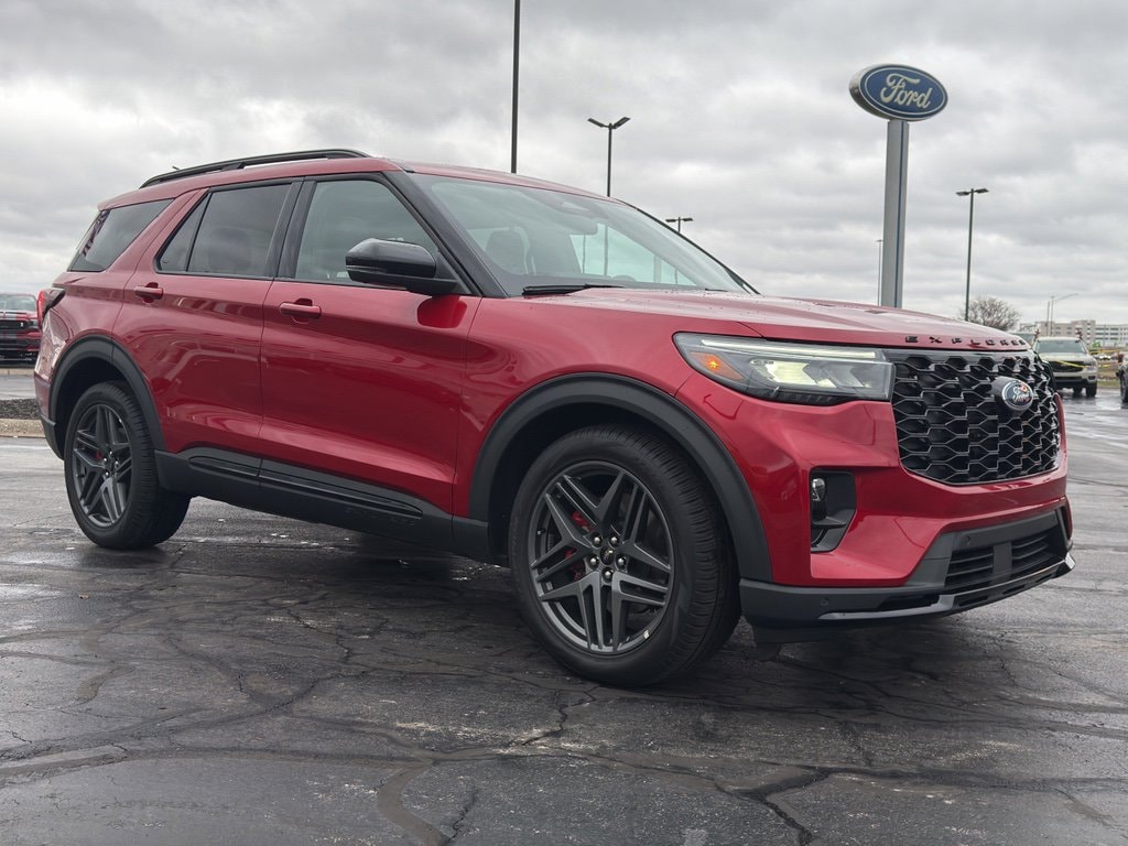 2025 Ford Explorer ST 4WD, V6 3.0L, 5,052 miles Evansville, IN This 2025 Ford Explorer ST delivers high-performance capability and premium comfort at the best price in Evansville, IN. With a potent V6 3.0L gasoline engine and available four-wheel drive, this Ford Explorer ST balances thrilling acceleration with confident handling on every road and in varying conditions. Low mileage just 5,052 miles means you'll enjoy years of spirited driving and strong resale value. This CARFAX 1-Owner vehicle offers a sophisticated interior featuring leather seats, heated steering wheel, and an advanced navigation system to keep you connected and comfortable on long trips. Adaptive Cruise Control enhances highway driving convenience and safety, maintaining speed and distance for relaxed, attentive driving. Exterior styling and performance-focused ST enhancements make a bold statement while practical features and modern technology equip this Ford Explorer for daily commutes and family adventures alike. Whether you need capability for weekend getaways or a refined daily driver, this Ford Explorer ST blends utility and luxury in one package. Located in Evansville, IN, this Ford Explorer is competitively priced and ready for immediate test drive. Don't miss the opportunity to own a low-mileage, CARFAX 1-Owner 2025 Ford Explorer ST with premium features and exceptional value. Contact us today to schedule a viewing or request the vehicle history report.